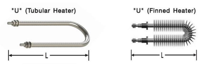 ฮีตเตอร์ครีบและฮีตเตอร์ท่อกลม แบบตัว “U” (Finned Heater) / “U” (Tubular Heater) ฮีตเตอร์ท่อกลมแบบตัว U ใช้ในงานอุ่น, ต้มนำ และยังใช้สำหรับงานอบแห้งทั่วไป เหมาะสำหรับโรงงานอุตสาหกรรมต่างๆ ส่วนฮีตเตอร์ครีบแบบตัว U ใช้สำหรับลดความชื้นในระบบทำความเย็น หรีอสำหรับงานอบแห้ง, งานอบไล่ความซึ๋น