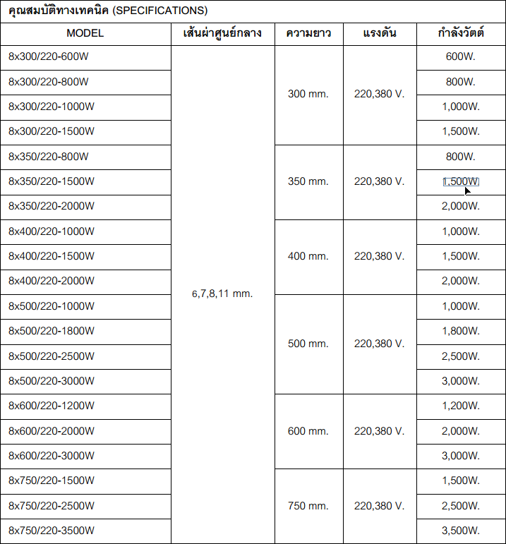 - ใช้ทำความร้อนในการอบชิ้นงาน ไล่ความชื้นในตู้คอนเวเยอร์ เตาอบ